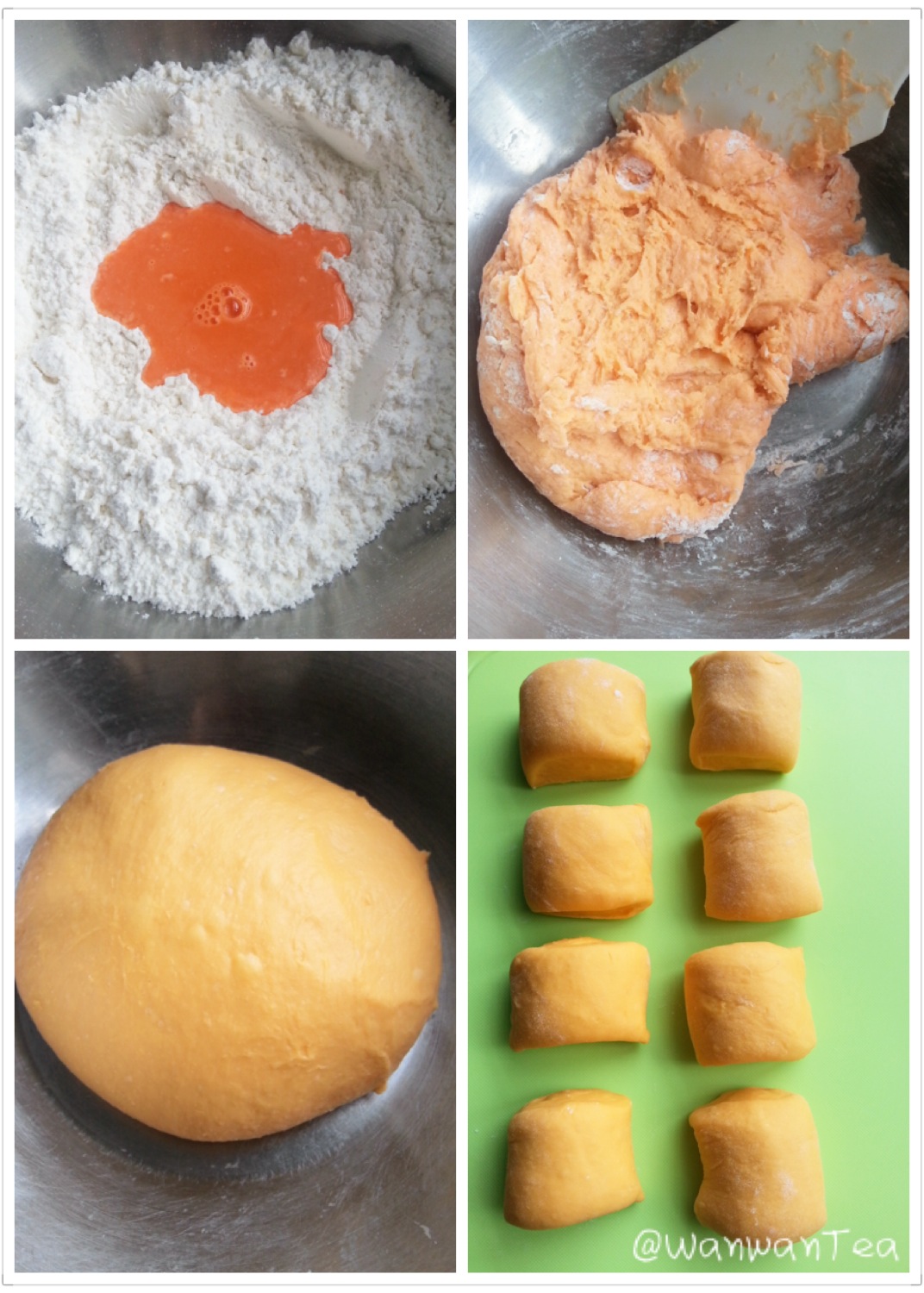 我在奶酥馅里头加入了适量的绿茶粉制成绿茶口味奶酥馅。